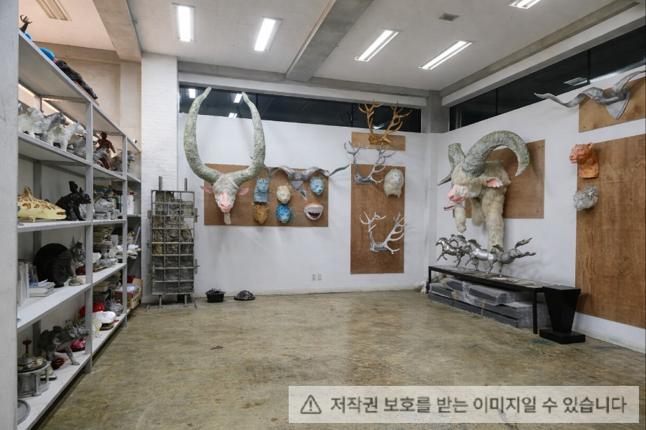 1층 실내 유명한 조각가부부의 조각전시품 및 소형 갤러리 / 인터뷰.화보촬영.뮤비.예능등 높은층고