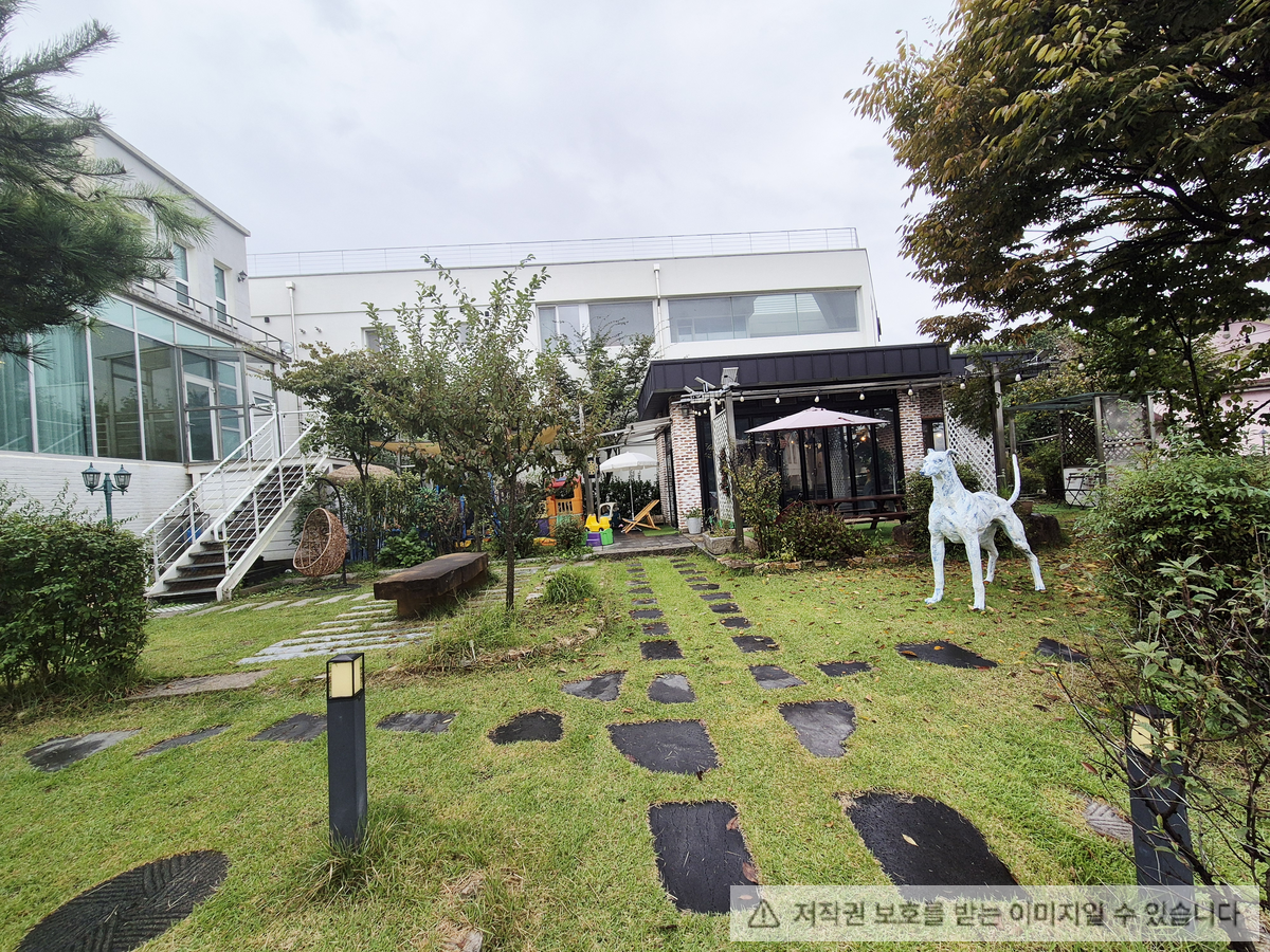 1층 야외 천연잔디정원 계절마다 바뀌는 꽃들과 나무들 잘 관리되어있는 야외